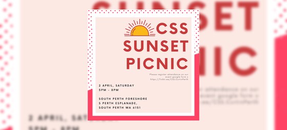 Hi all, We have finally got some plans going and here is our first club gathering/event! Please RSVP through here - https://forms.gle/zou57WvKypx5YyVh8 + get a ticket (free for CSS members: current & to-be) for yourself and plus one(s) through TidyHQ! Event Details Venue: South Perth Foreshore Date: 2nd April 2022, Saturday Time: 5pm to 8pm Please note: - No alcohol is allowed (by law) at this social gathering. - Some food / snacks will be provided but if you have specific dietary plans, you're welcome to bring your own. - Food will have Halal options. - Canned drinks will be sold (to help raise funds for the club). - If you have yet to pay your membership payment, please bring along $5 to finalise your membership.